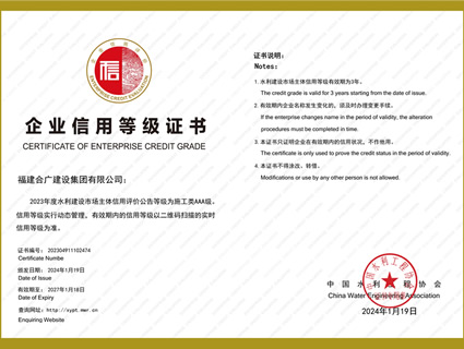 2024水利建設(shè)AAA企業(yè)信用等級(jí)證書